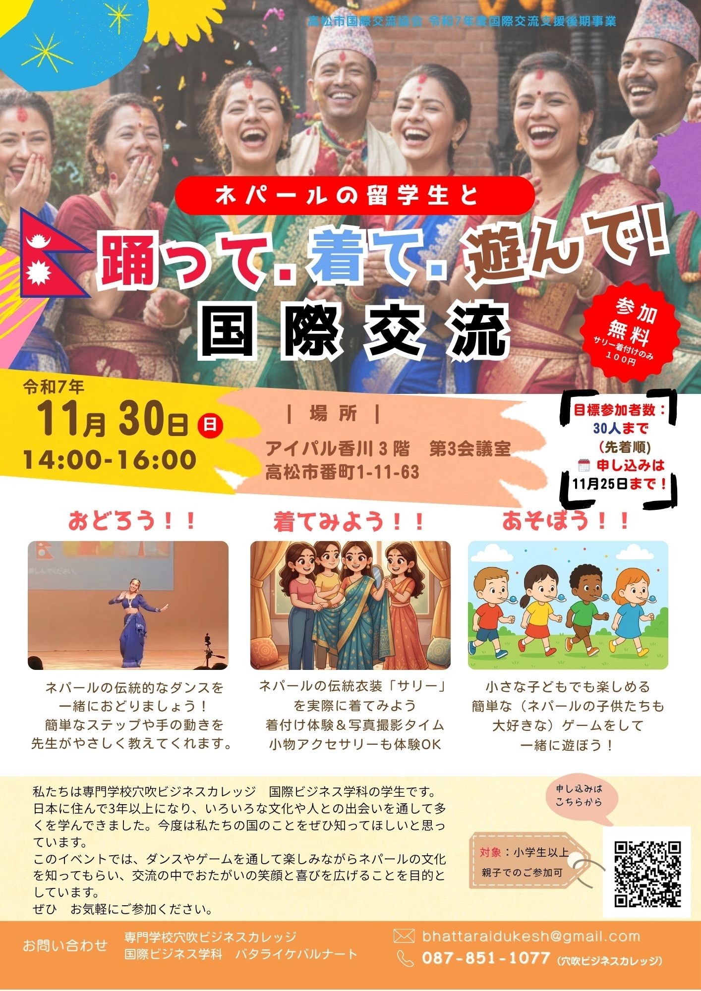 『ネパールの留学生と踊って、着て、遊んで!国際交流』 参加者募集(2025/11/07)