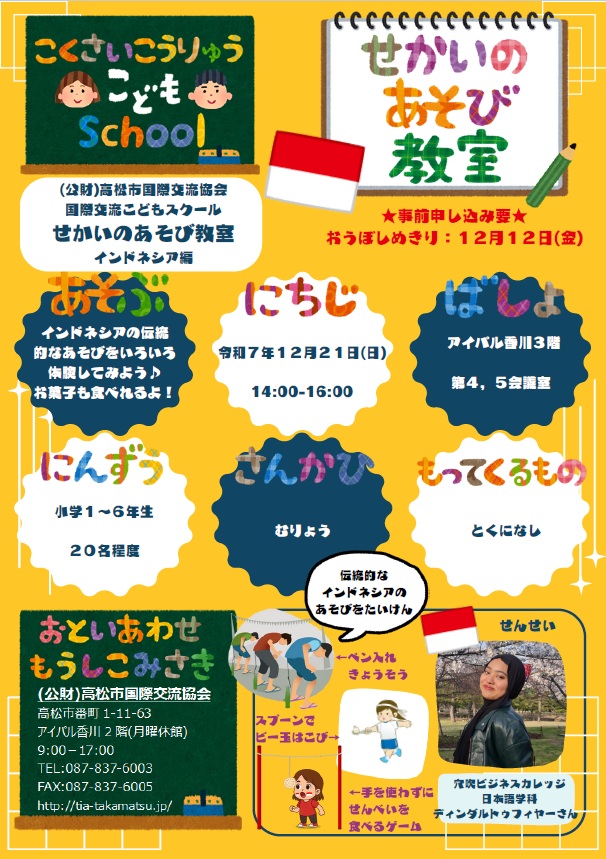 国際交流こどもスクール せかいのあそび教室【インドネシア編】参加者募集!(2025/11/05)