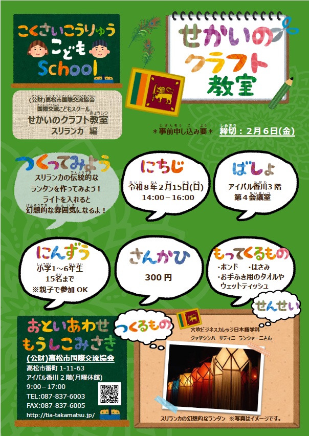 国際交流こどもスクール せかいのクラフト教室【スリランカ編】参加者募集(2025/12/16)