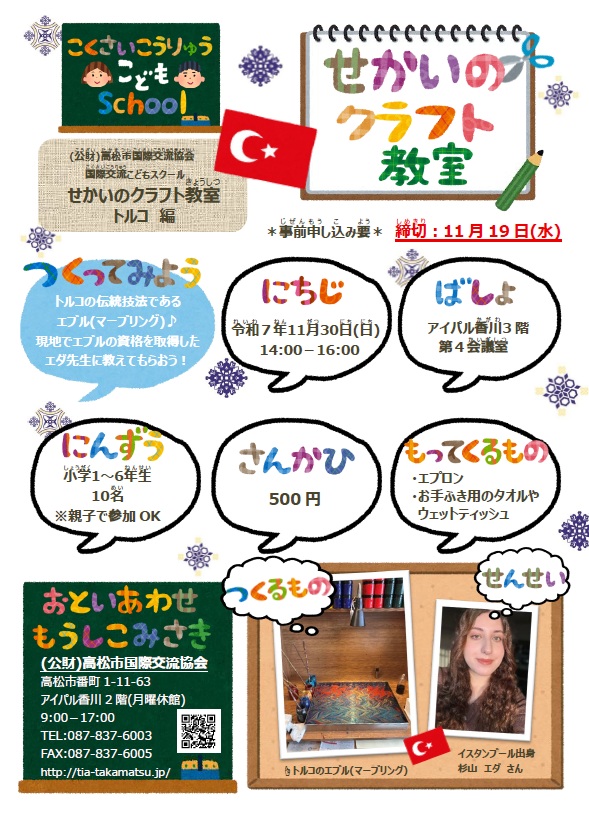 国際交流こどもスクール せかいのクラフト教室【トルコ編】参加者募集(2025/10/10)