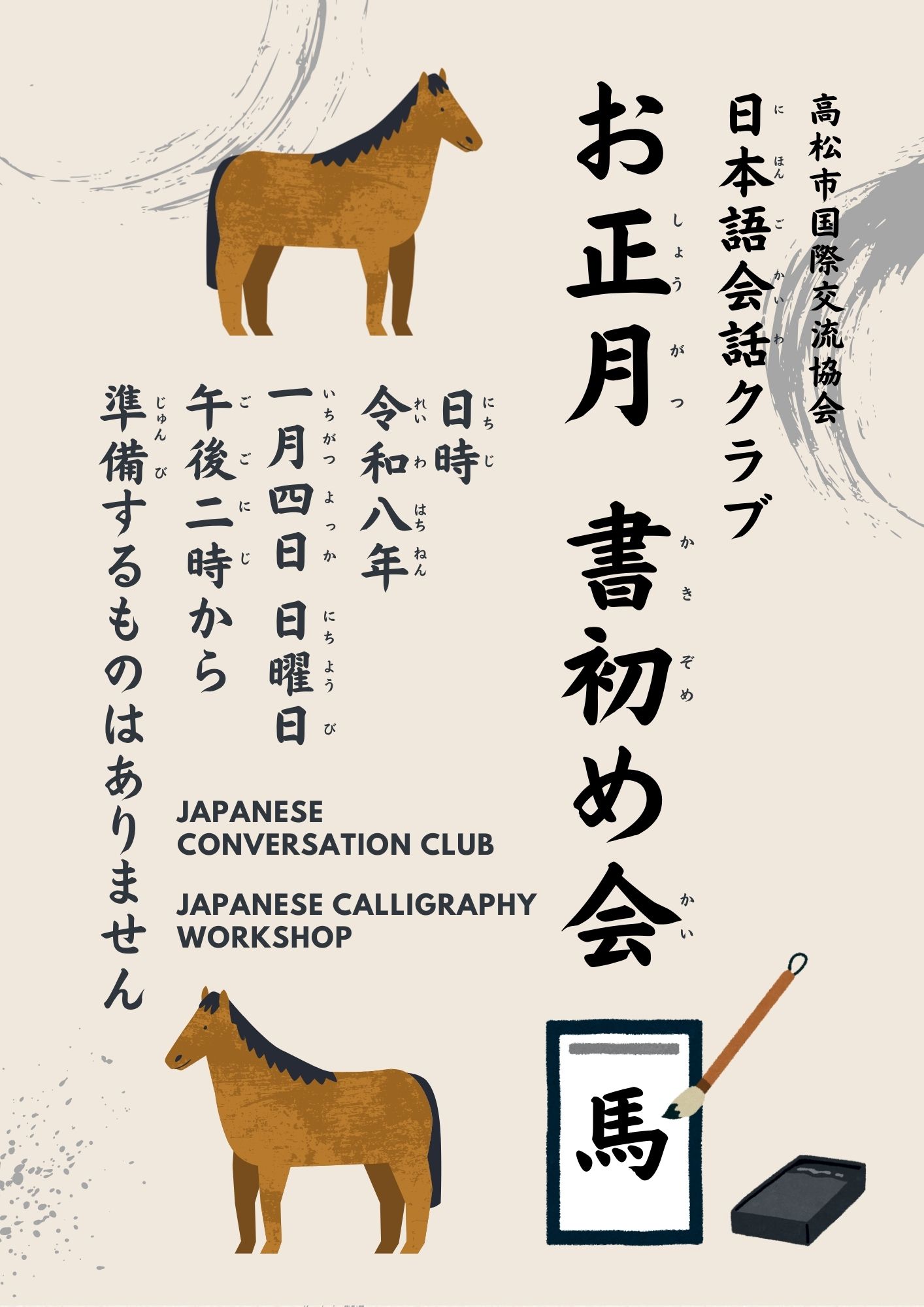 日本語会話クラブ 「お正月書初め会」開催します(2025/12/17)