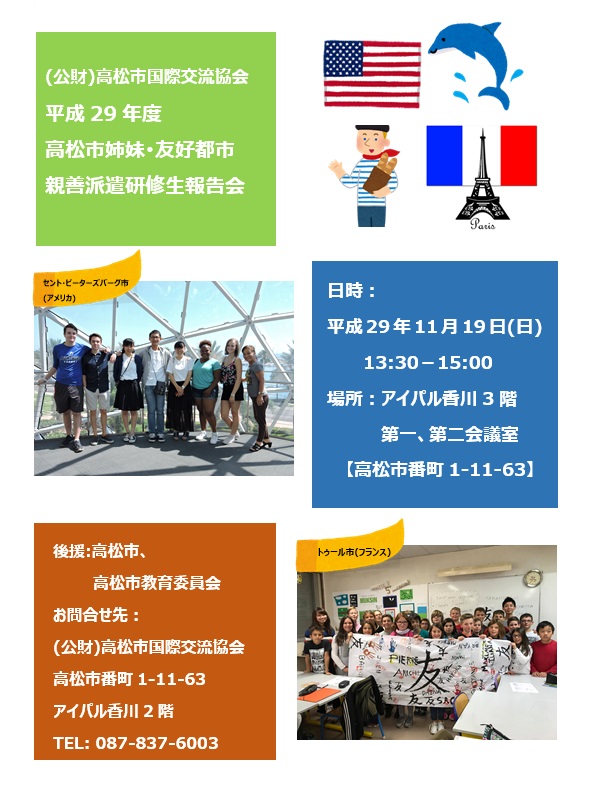 平成29年度高松市姉妹・友好都市親善研修生報告会が11/19(日)、アイパル香川にて開催されました。